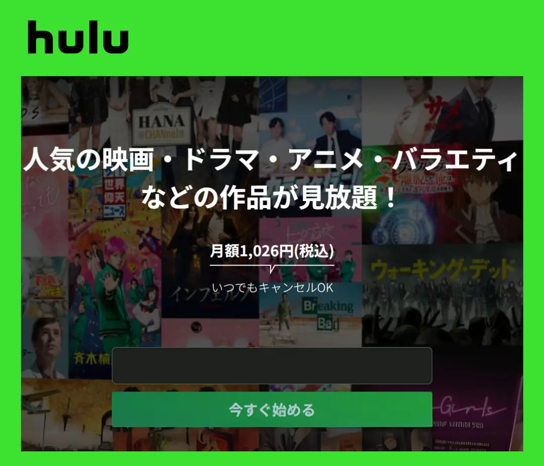 | Hulu | 1,300本 | 1,026円 | |||